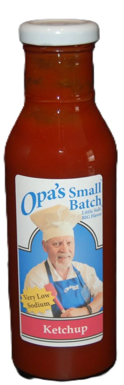 Ketchup might very well be the most popular condiment in America. Opa has developed a recipe that rivals the taste of the leading national brand with almost 99% less sodium! This new ketchup has only 2 mg sodium per serving compared to 150 mg for Heinz Ketchup. Come taste it for yourself.